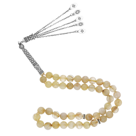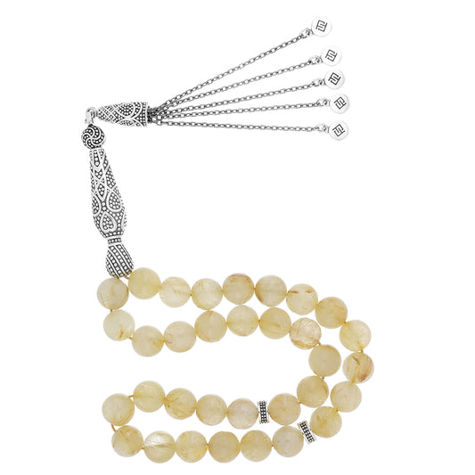 سبحة 33 روتل طبيعي بيلية 11 مل طقم فضة عيار 925