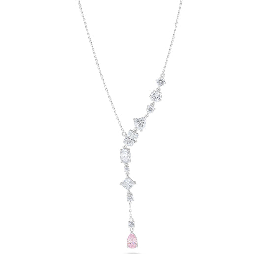 Sterling Silver 925 Necklace Rhodium Plated Embedded With Pink Zircon And White Zircon