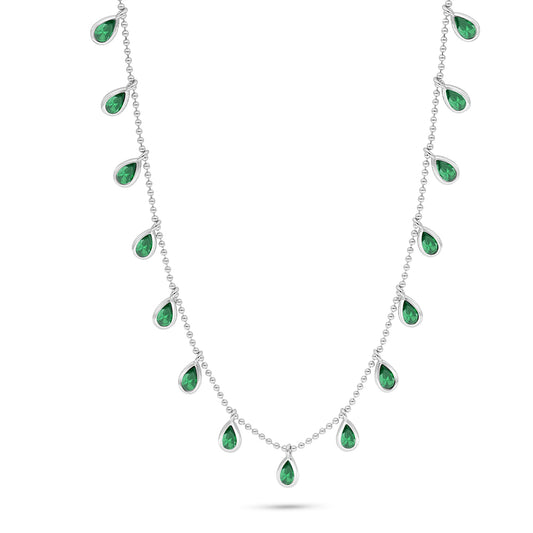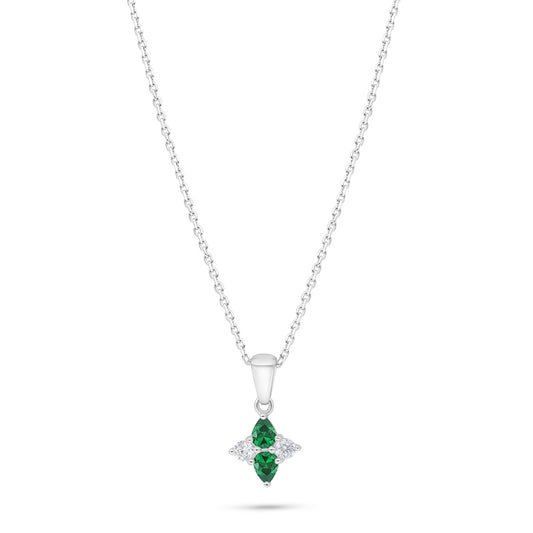 Sterling Silver 925 Necklace Rhodium Plated Embedded With Emerald Zircon