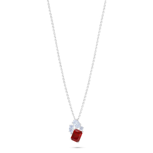 Sterling Silver 925 Necklace Rhodium Plated Embedded With Ruby Corundum And White Zircon