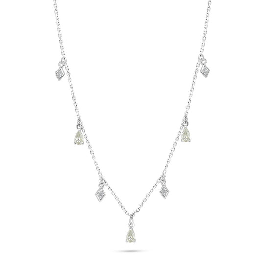 Sterling Silver 925 Necklace Rhodium Plated Embedded With Diamond Zircon And White Zircon
