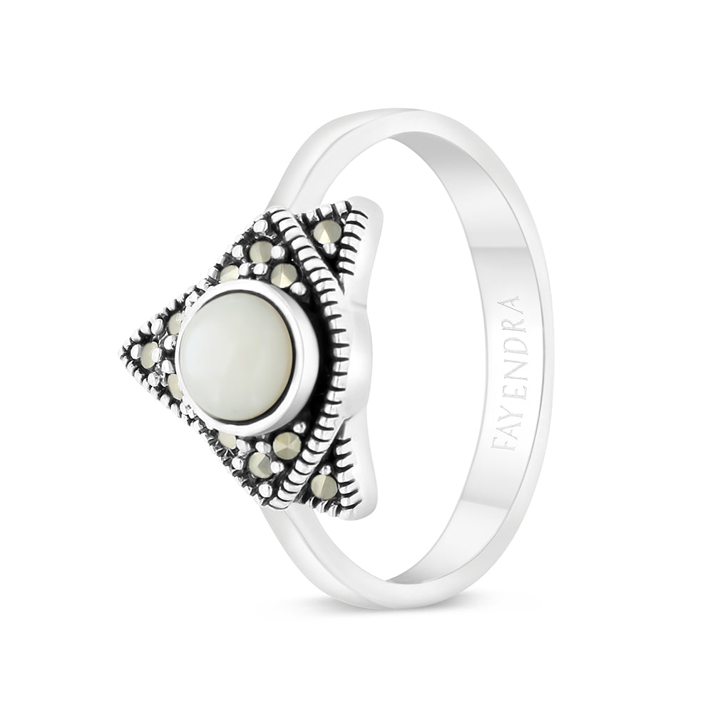 Sterling Silver 925 Ring Embedded With Natural White Shell And Marcasite Stones