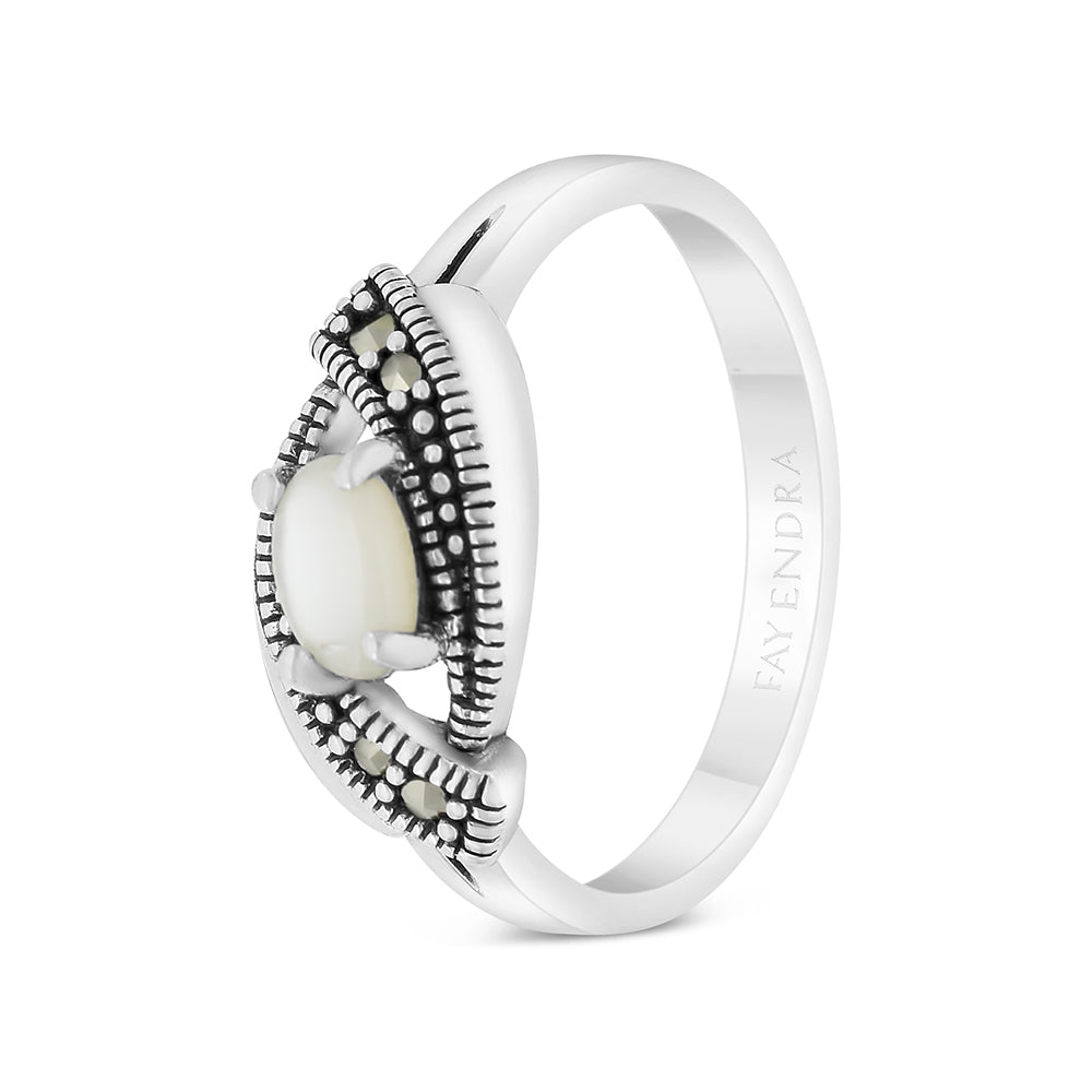 Sterling Silver 925 Ring Embedded With Natural White Shell And Marcasite Stones