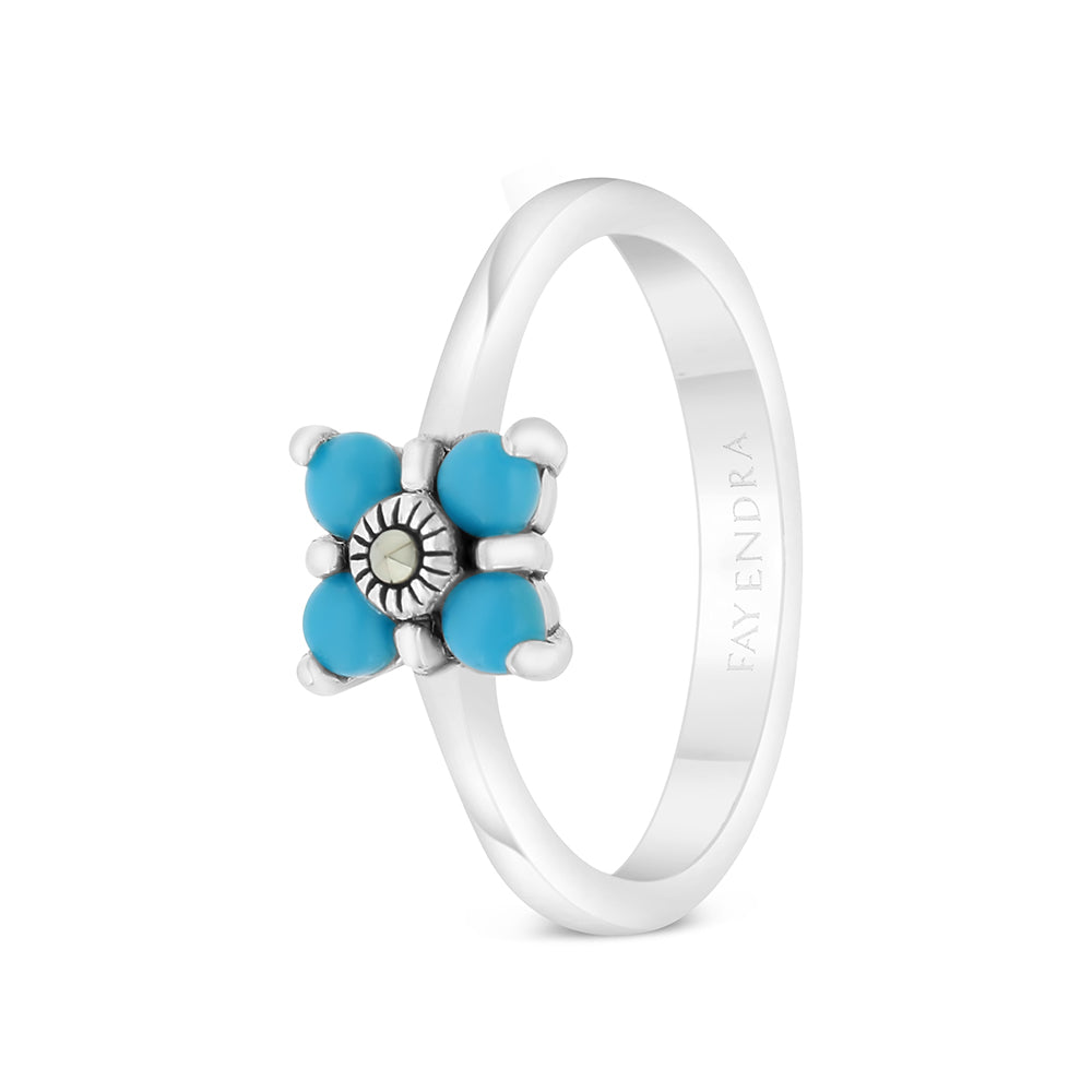 Total Weight: 2g Bloom and blossom, beautiful lady! Sterling silver delicate ring adorned with naturally processed turquoise forming the shape of a flower, making it a must-have jewel. Express your femininity with ur dainty jewelry.