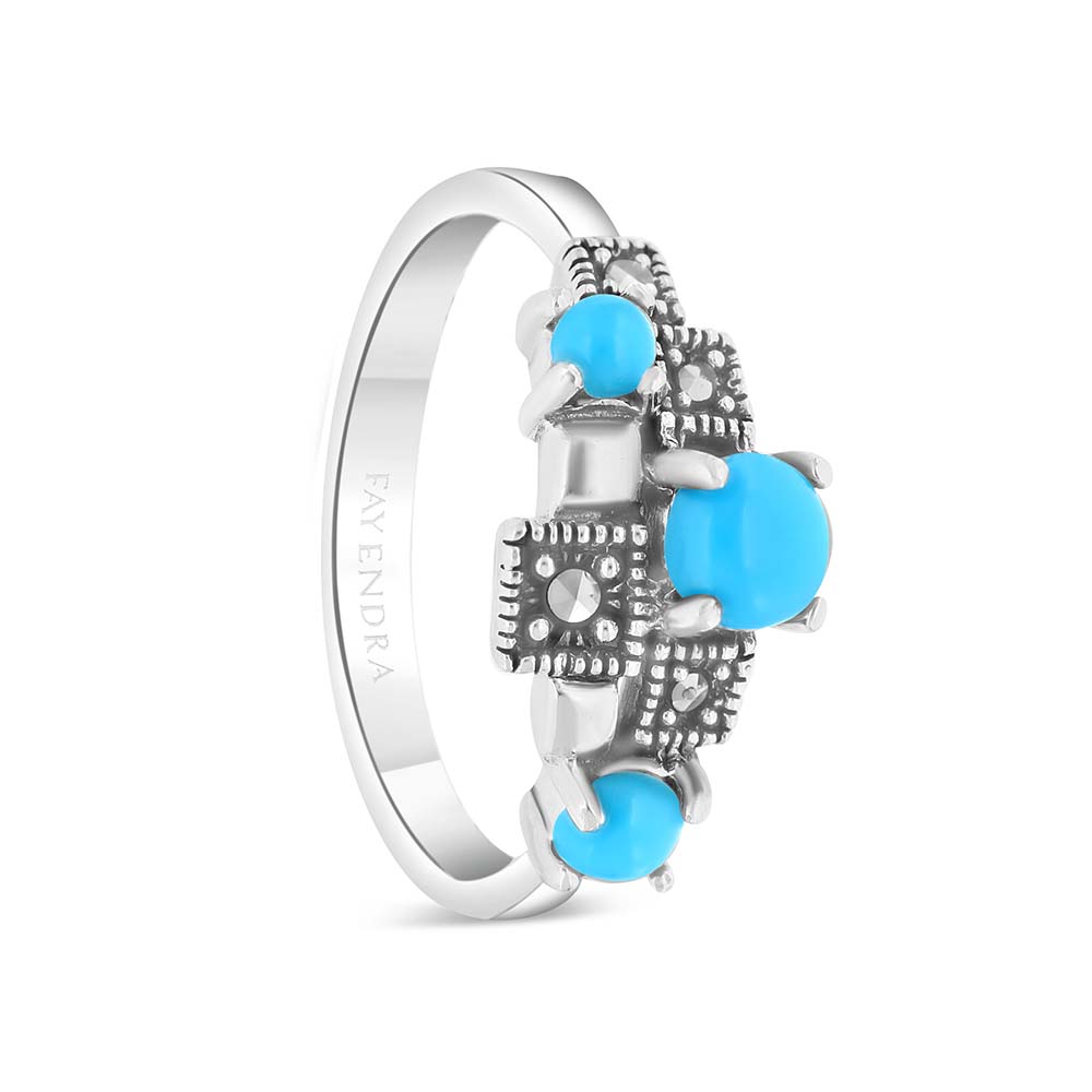 Sterling Silver 925 Ring Embedded With Natural Processed Turquoise And Marcasite Stones