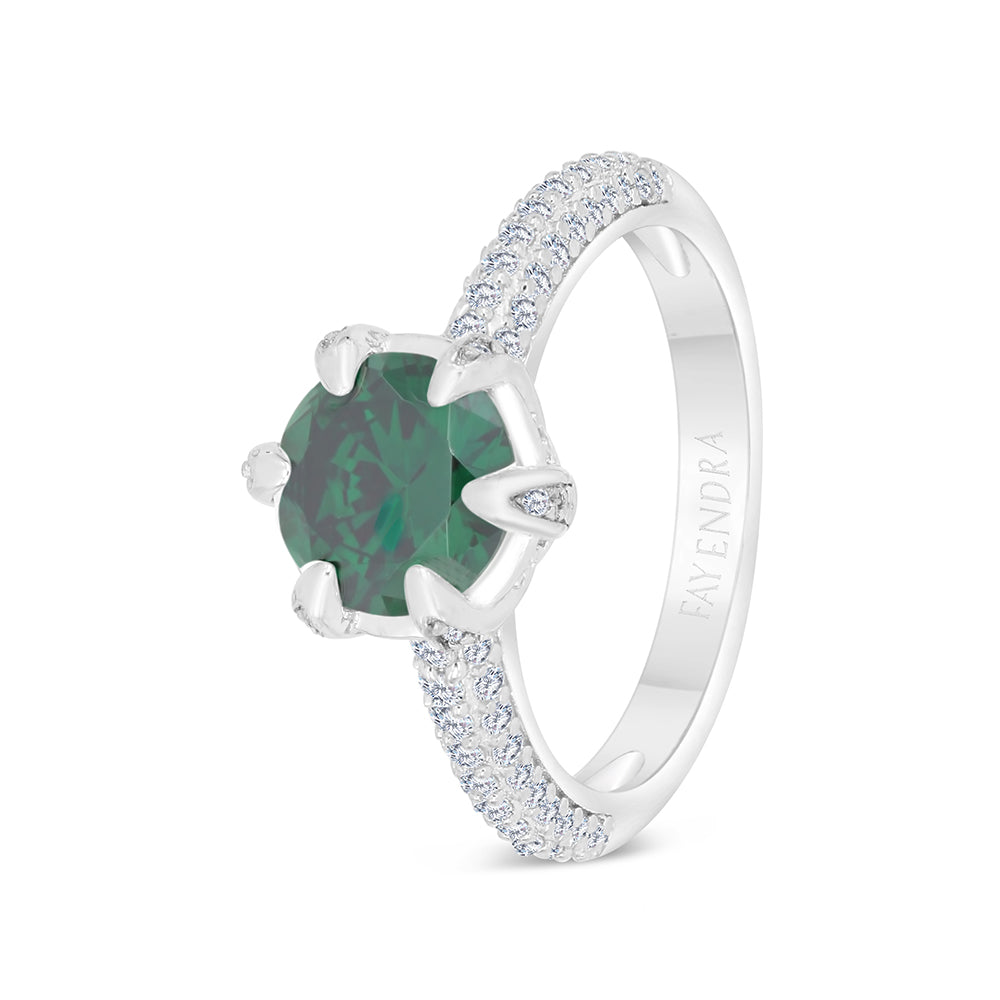 Sterling Silver 925 Ring Rhodium Plated Embedded With Emerald Zircon And White CZ