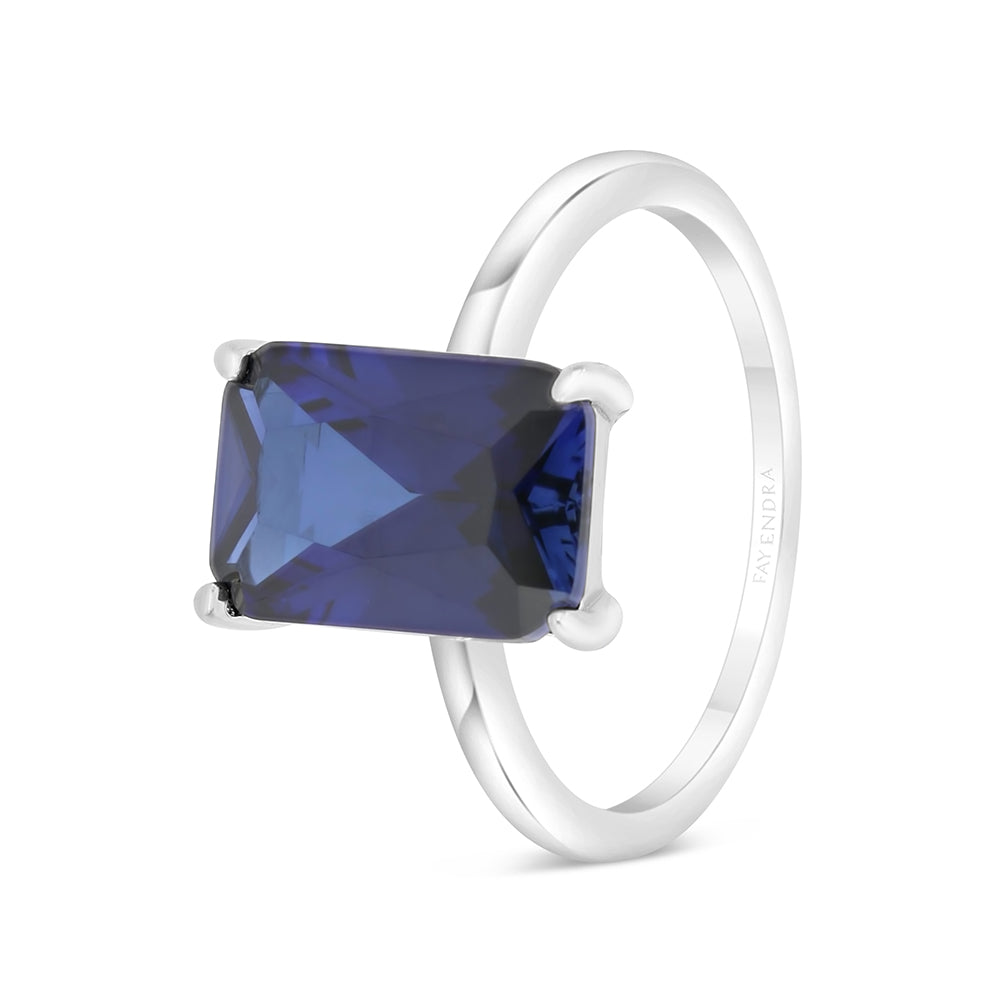 Sterling Silver 925 Ring Rhodium Plated Embedded With Sapphire Corundum