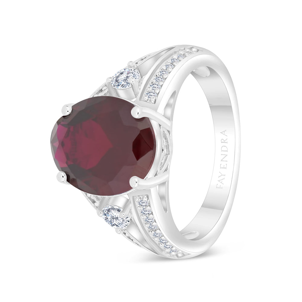 Sterling Silver 925 Ring Rhodium Plated Embedded With Ruby Corundum And White CZ