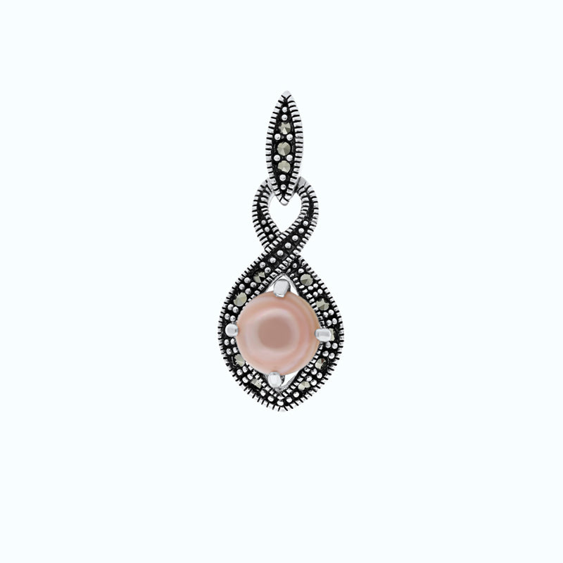 Sterling Silver 925 Pendant Embedded With Natural Pink Shell And Marcasite Stones