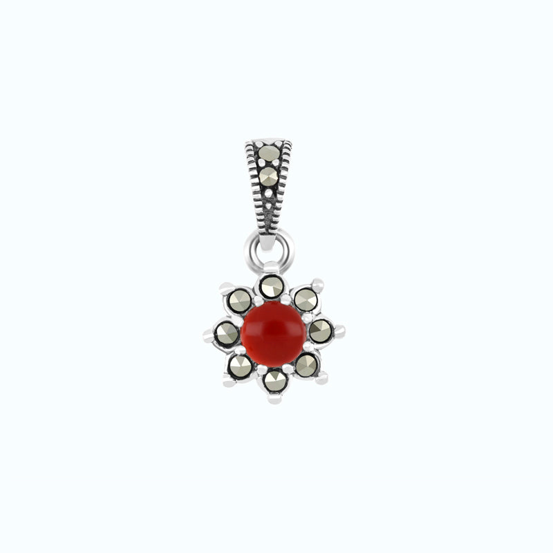 Sterling Silver 925 Pendant Embedded With Natural Aqiq And Marcasite Stones