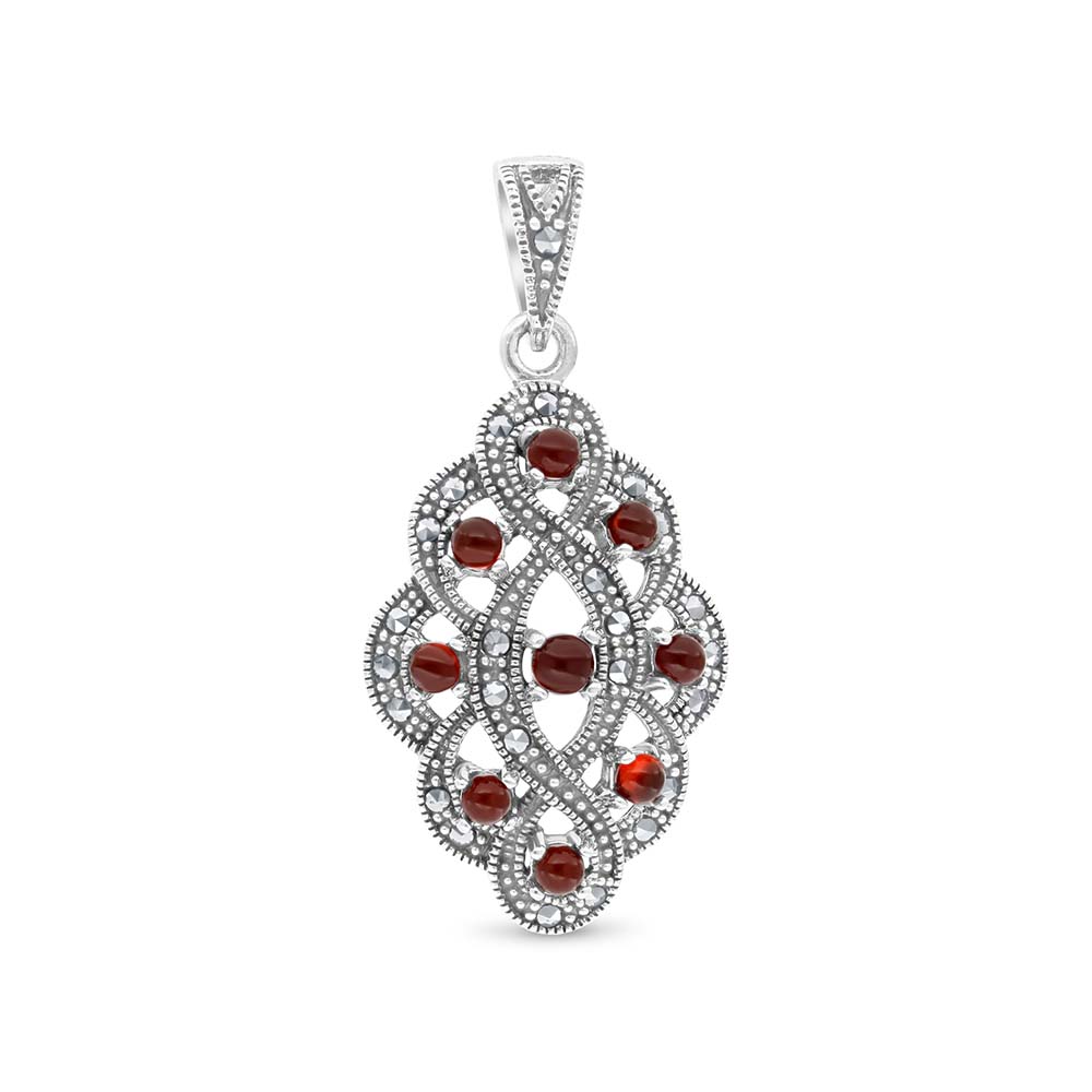 Sterling Silver 925 Pendant Embedded With Natural Aqiq And Marcasite Stones