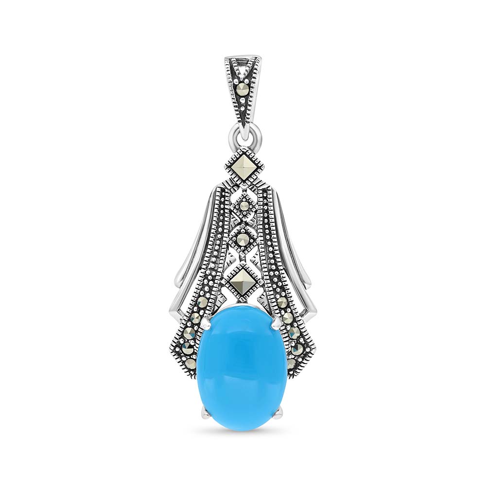 Sterling Silver 925 Pendant Embedded With Natural Processed Turquoise And Marcasite Stones
