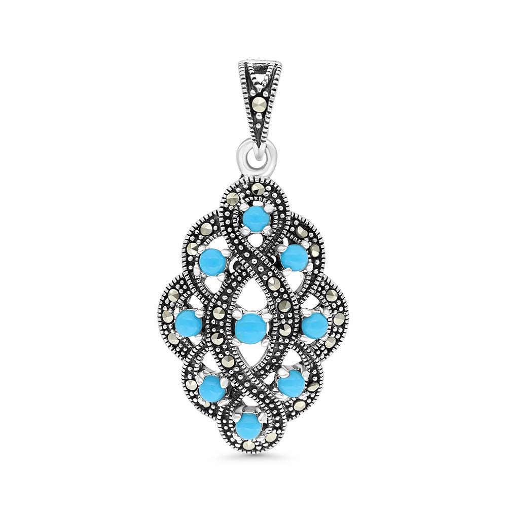 Sterling Silver 925 Pendant Embedded With Natural Processed Turquoise And Marcasite Stones