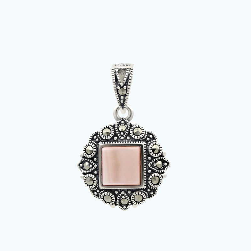 Sterling Silver 925 Pendant Embedded With Natural Pink Shell And Marcasite Stones