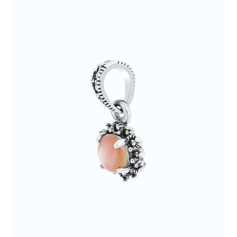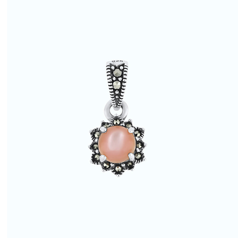 Sterling Silver 925 Pendant Embedded With Natural Pink Shell And Marcasite Stones