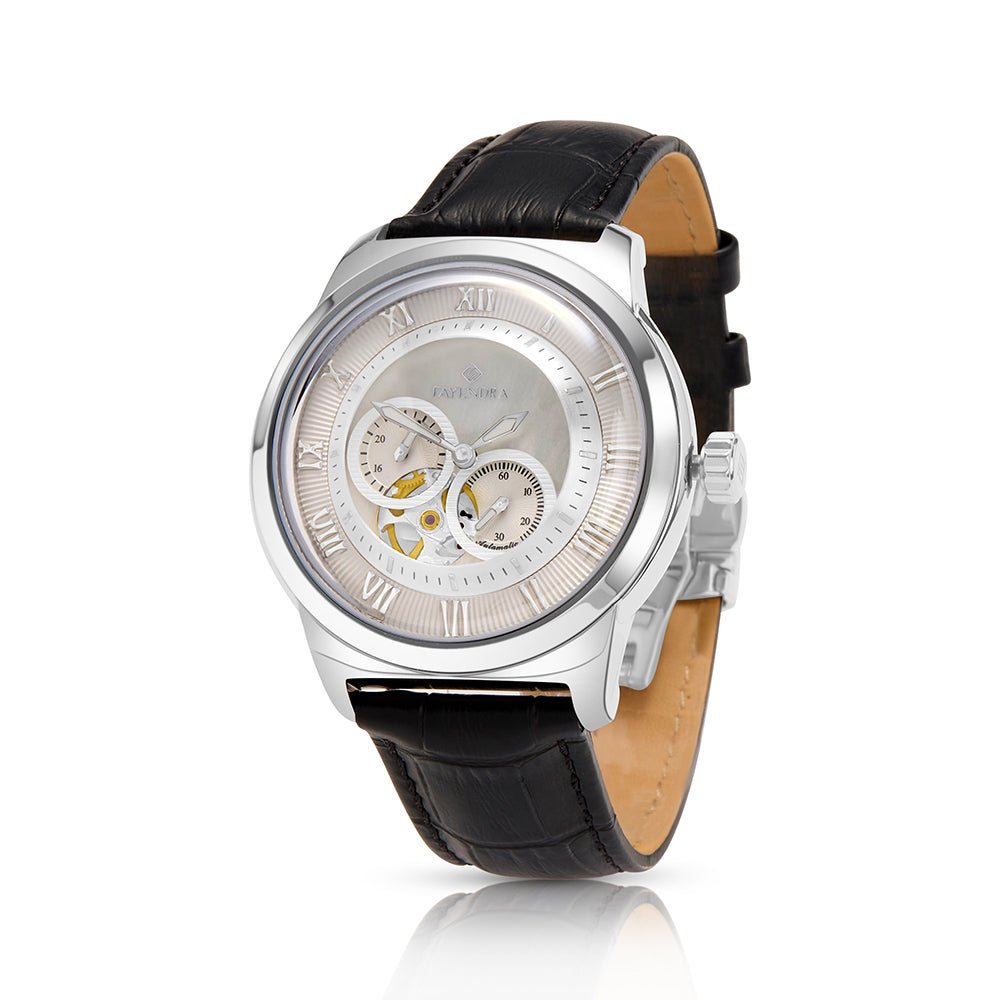 Stainless Steel 316L Watch Silver Color Black Leather For Men - WHITE MOP DIAL