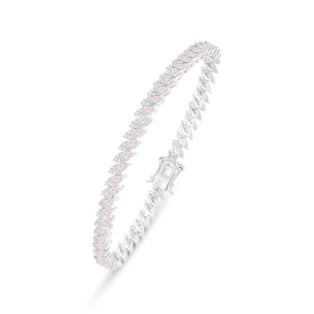 Sterling Silver 925 Bracelet Rhodium Plated Embedded With Pink Zircon And White Zircon