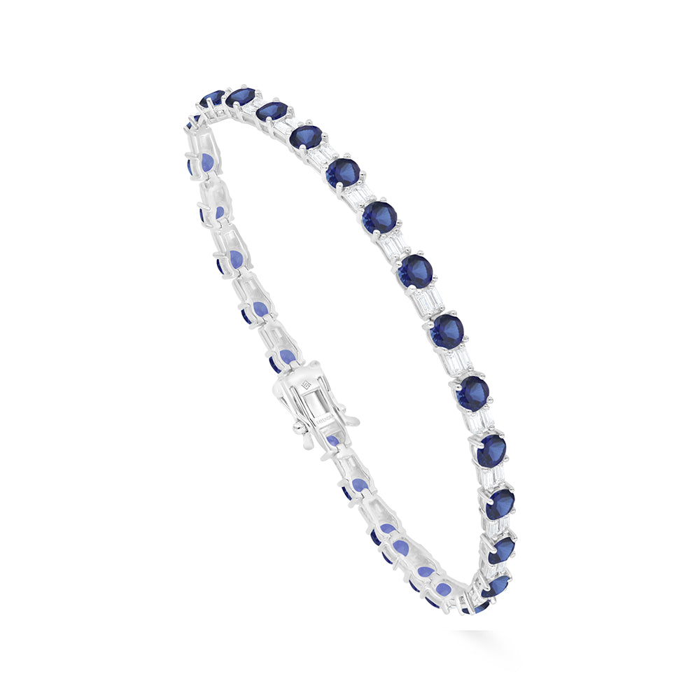 Sterling Silver 925 Bracelet Rhodium Plated Embedded With Sapphire Corundum And White Zircon