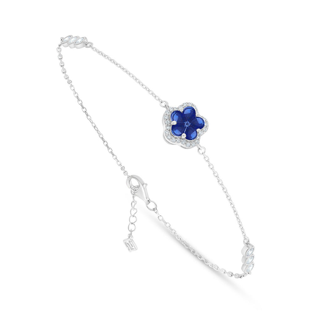 Sterling Silver 925 Bracelet Rhodium Plated Embedded With Sapphire Corundum And White Zircon