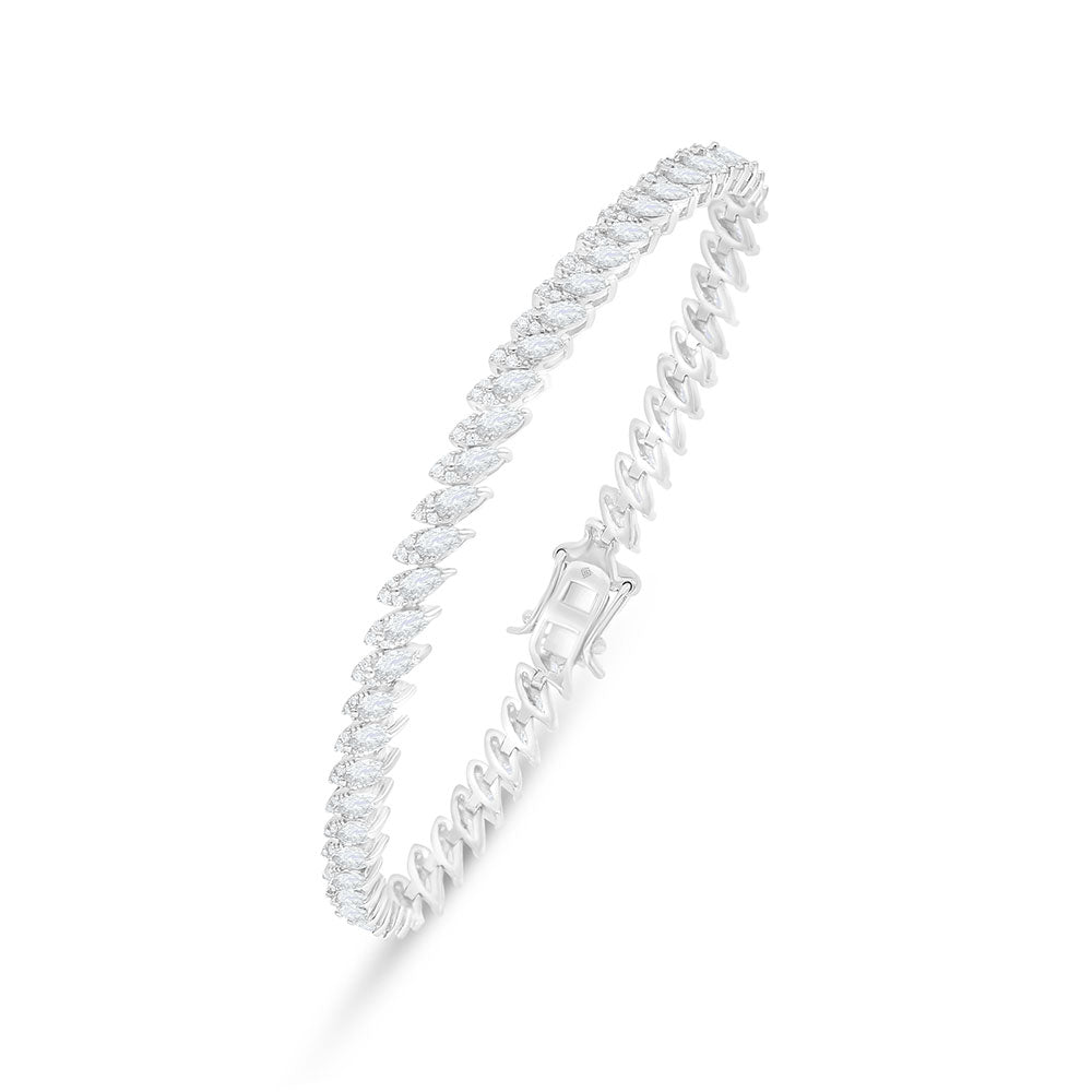 Sterling Silver 925 Bracelet Rhodium Plated Embedded With White Zircon