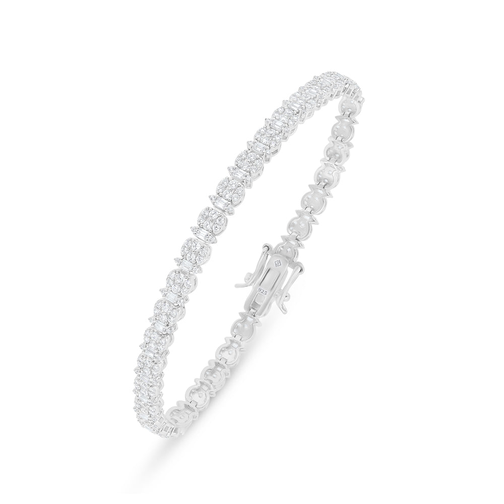 Sterling Silver 925 Bracelet Rhodium Plated Embedded With White Zircon