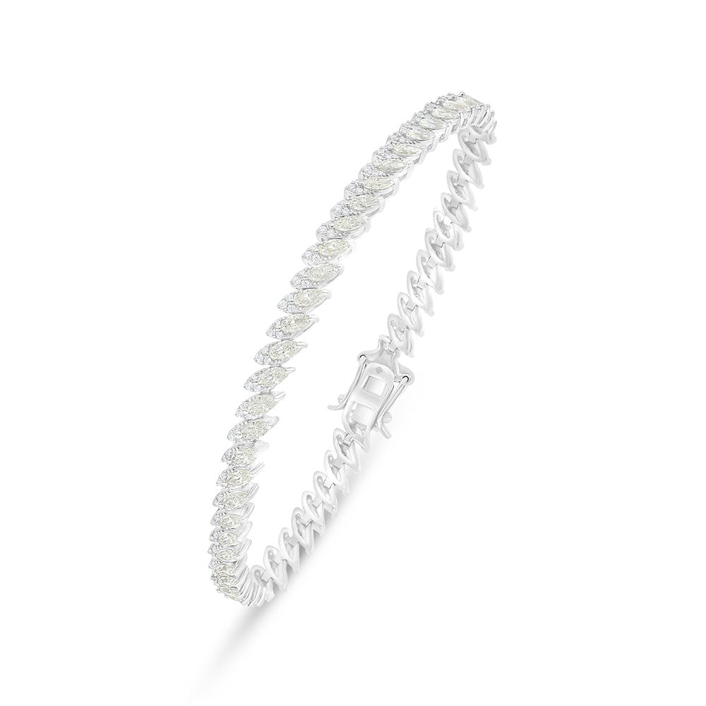 Sterling Silver 925 Bracelet Rhodium Plated Embedded With Yellow Diamond And White Zircon