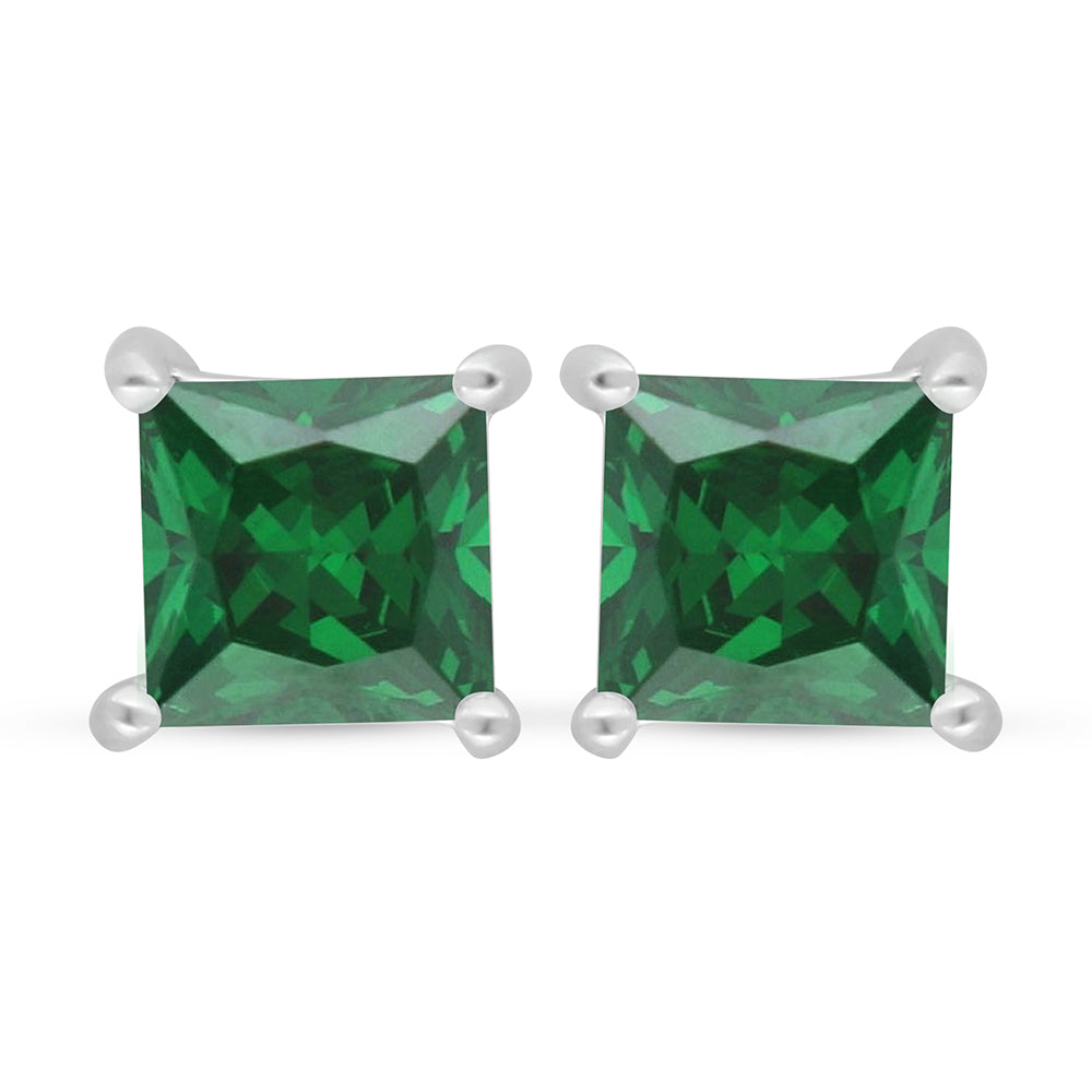 Sterling Silver 925 Earring Rhodium Plated Embedded With Emerald Zircon