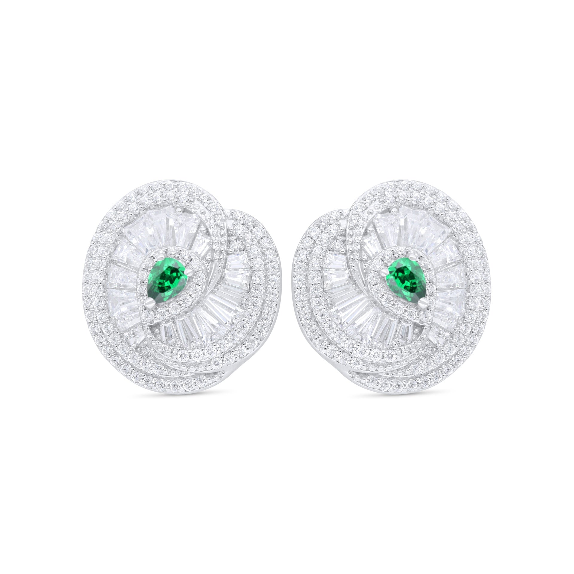 Sterling Silver 925 Earring Rhodium Plated Embedded With Emerald Zircon And White Zircon