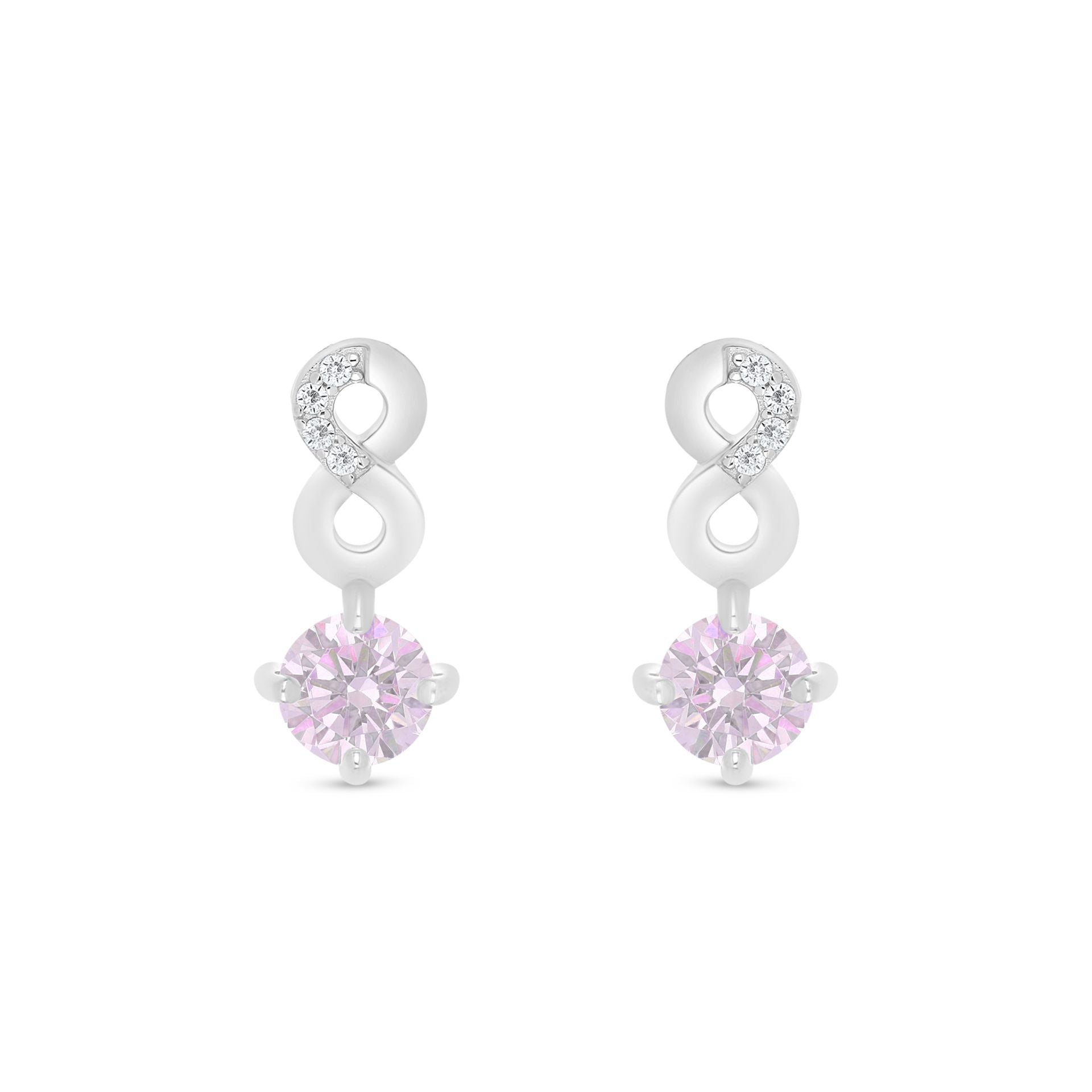 Sterling Silver 925 Earring Rhodium Plated Embedded With pink Zircon And White Zircon