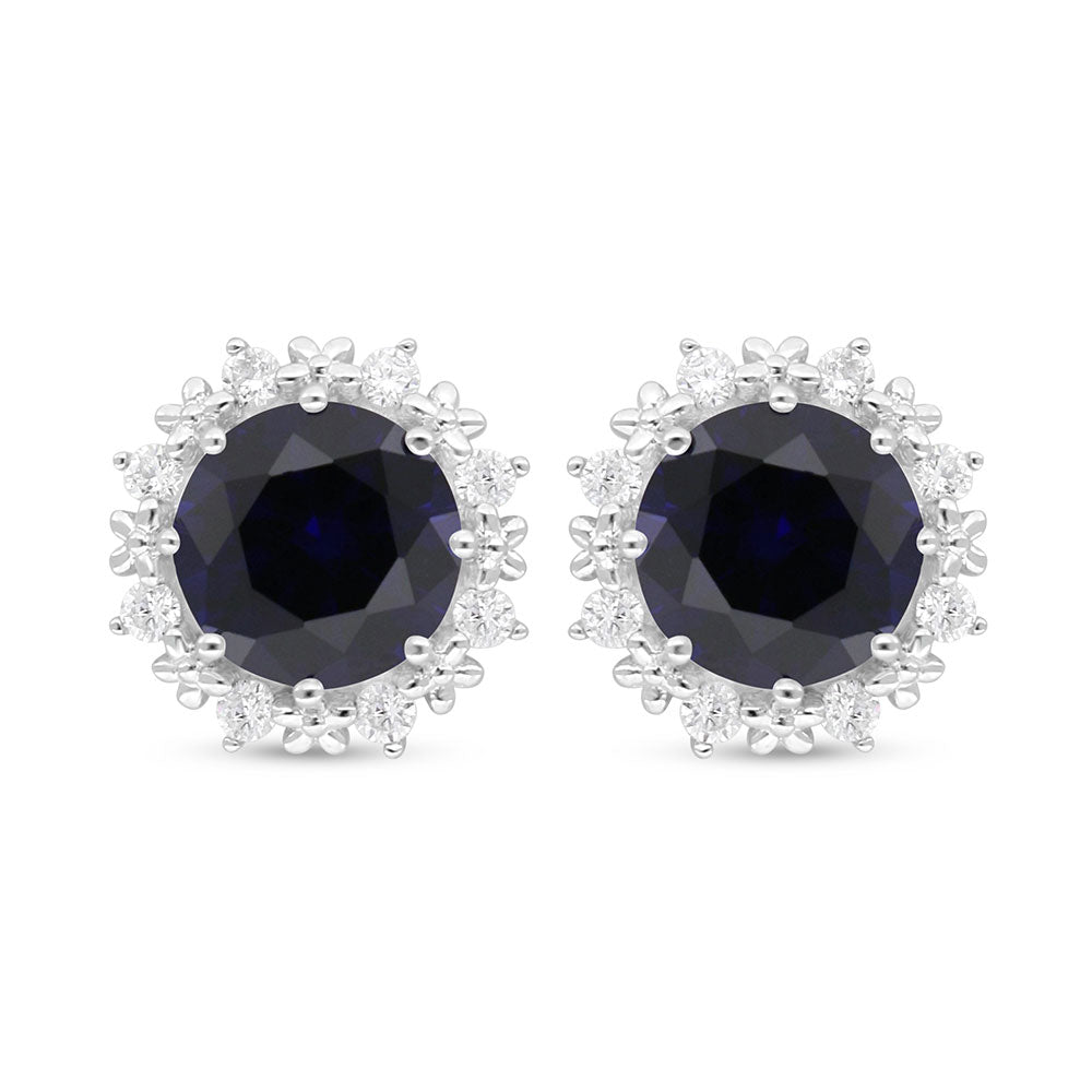 Sterling Silver 925 Earring Rhodium Plated Embedded With Sapphire Corundum And White Zircon