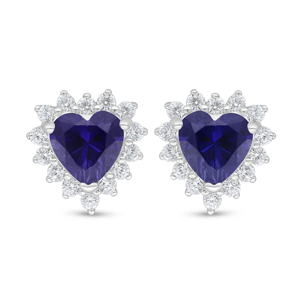 Sterling Silver 925 Earring Rhodium Plated Embedded With Sapphire Corundum And White Zircon