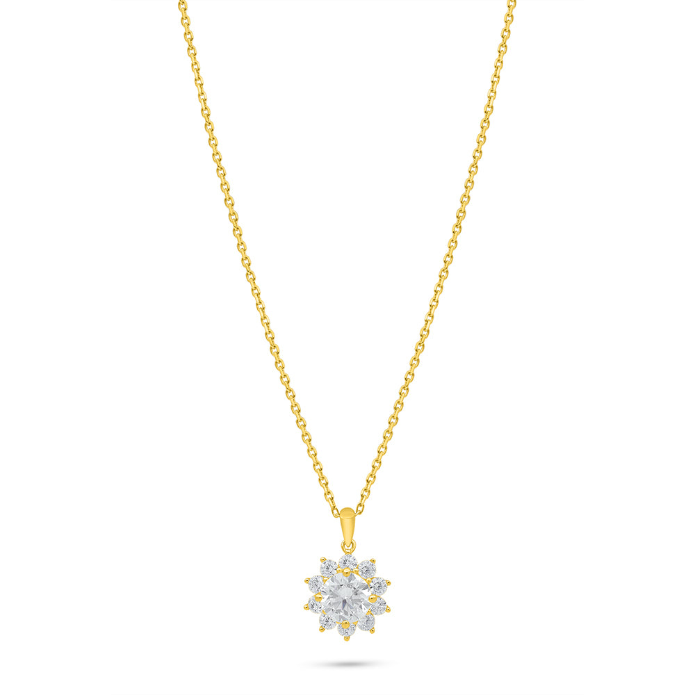 Sterling Silver 925 Necklace Golden Plated Embedded With Diamond Zircon And White Zircon