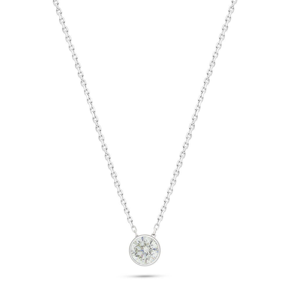 Sterling Silver 925 Necklace Rhodium Plated Embedded With Diamond Zircon