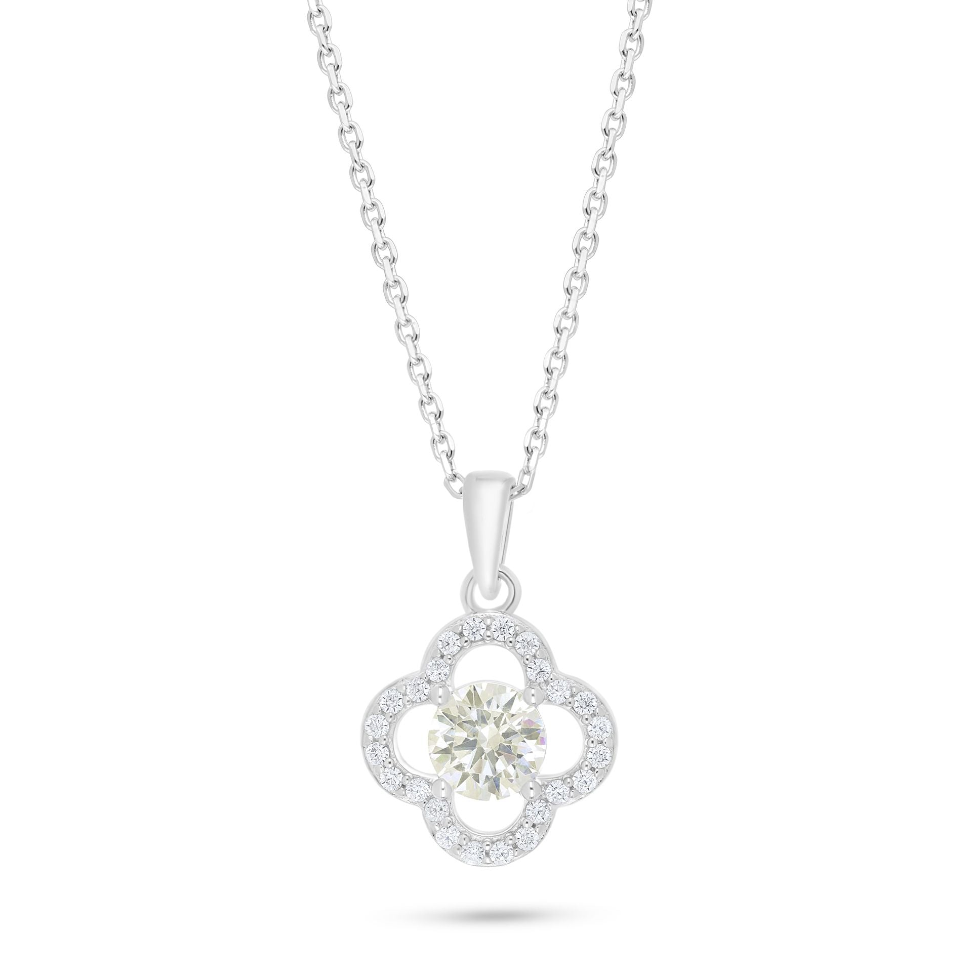 Sterling Silver 925 Necklace Rhodium Plated Embedded With Diamond Zircon And White Zircon