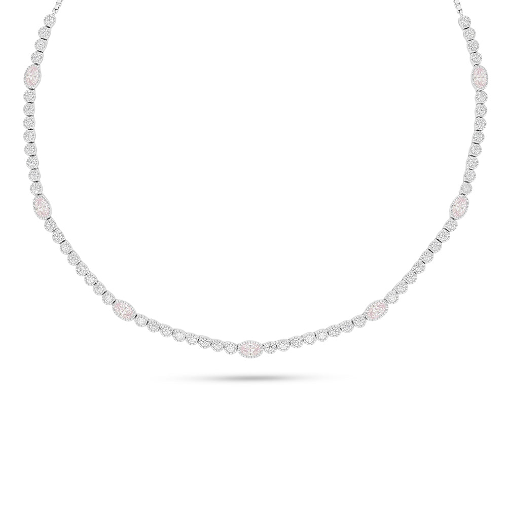 Sterling Silver 925 Necklace Rhodium Plated Embedded With Pink Zircon And White Zircon