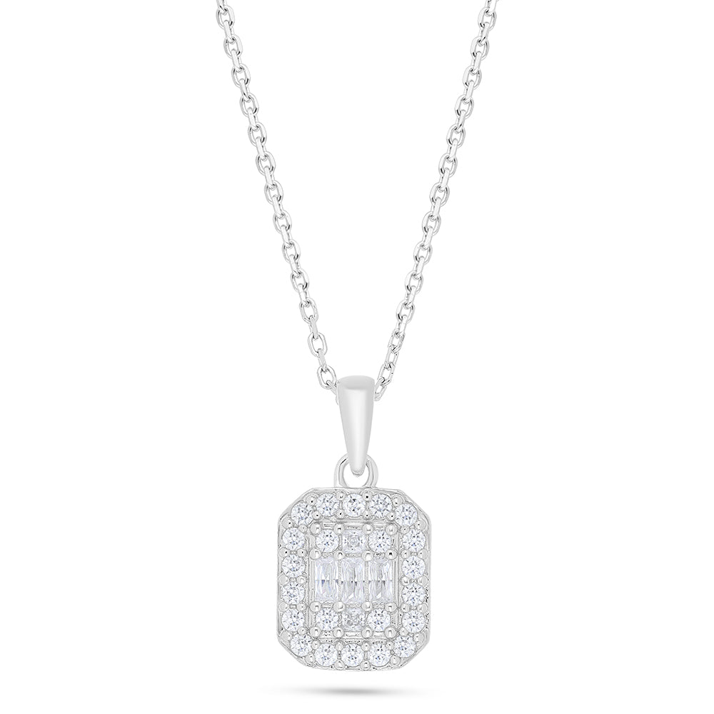 Sterling Silver 925 Necklace Rhodium Plated Embedded With White Zircon