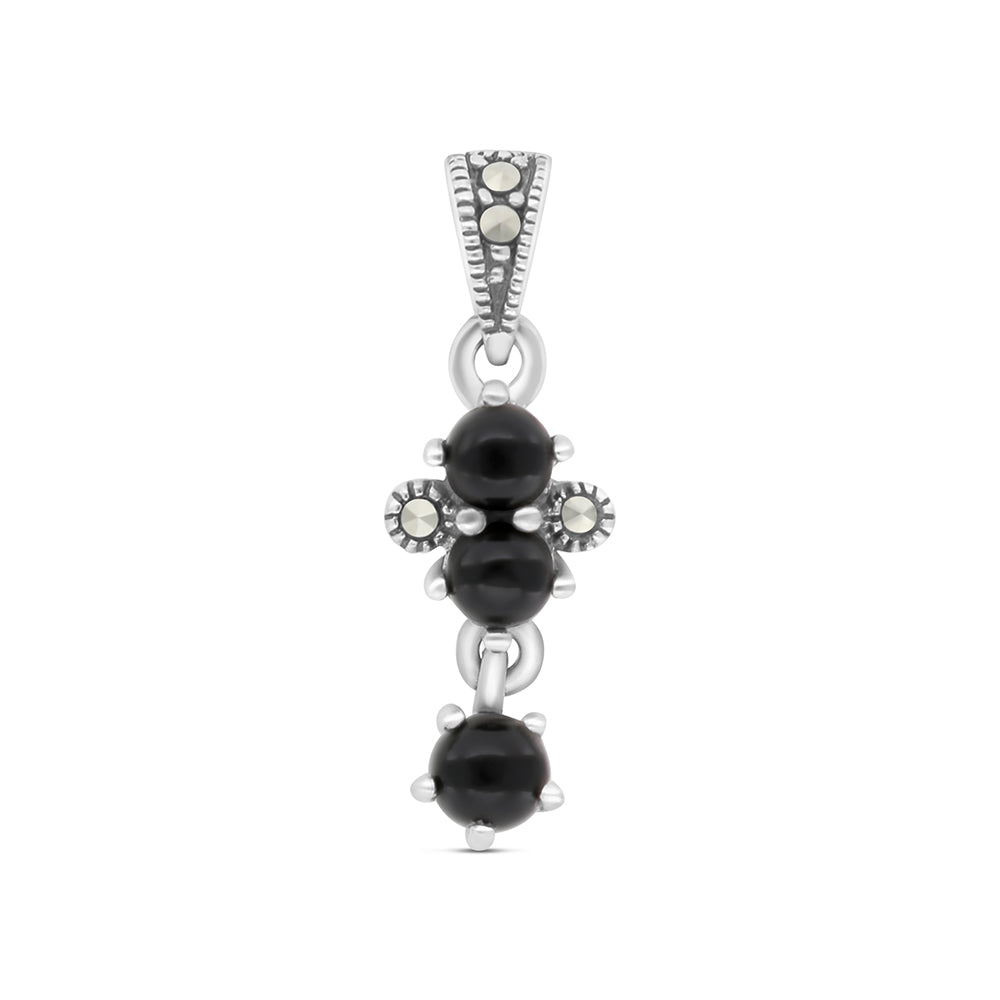 Sterling Silver 925 Pendant Embedded With Natural Black Agate And Marcasite Stones
