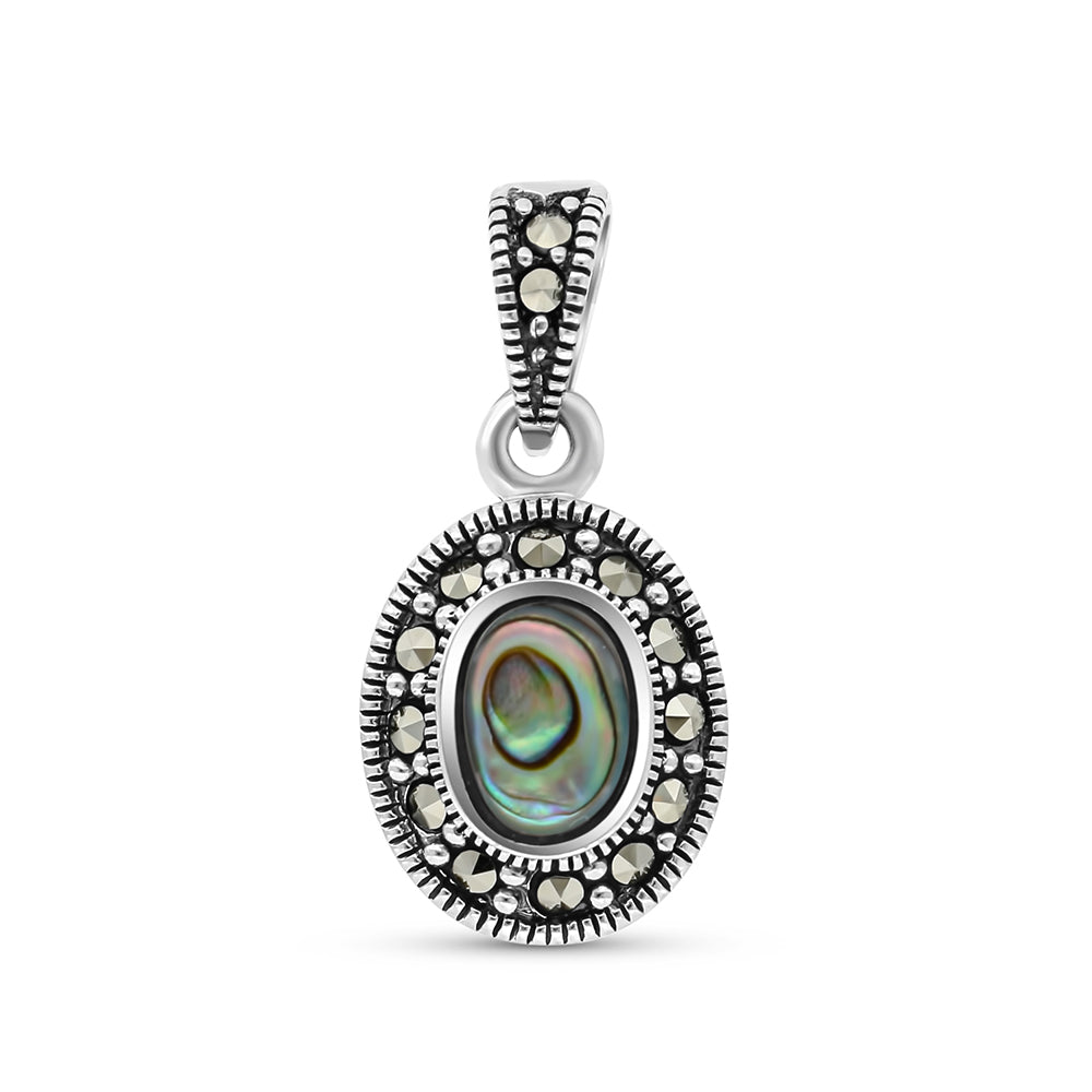 Sterling Silver 925 Pendant Embedded With Natural Blue Shell And Marcasite Stones