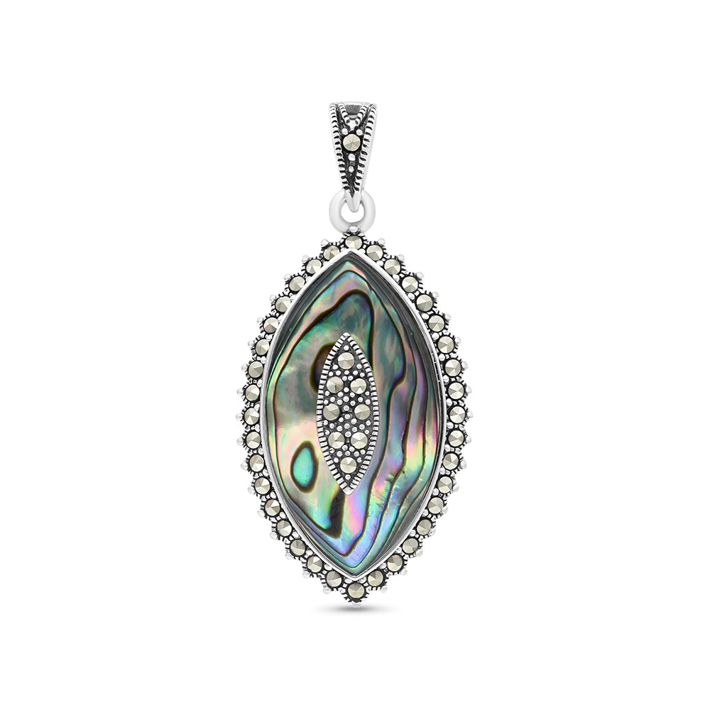 Sterling Silver 925 Pendant Embedded With Natural Blue Shell And Marcasite Stones