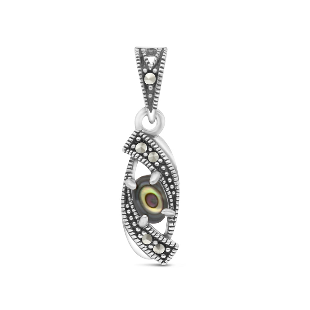 Sterling Silver 925 Pendant Embedded With Natural Blue Shell And Marcasite Stones