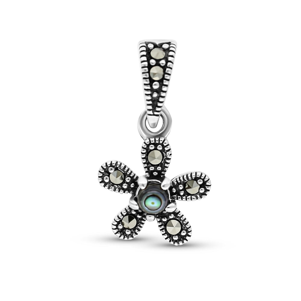 Total weight: 1.1gShine this season with dazzling jewelry inlaid with natural stones, which reflects the beauty and vitality of nature from Fayendra's collection, including this pendant inspired by flowers with its delicate design and delightful color. The dainty pendant is made of 925 sterling silver and encrusted with natural pawa shell stone and marcasite, and it's a part of an integrated set designed in multiple colors to suit every taste.