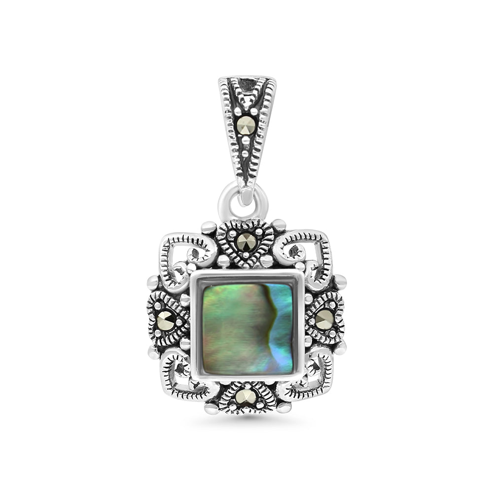 Sterling Silver 925 Pendant Embedded With Natural Blue Shell And Marcasite Stones