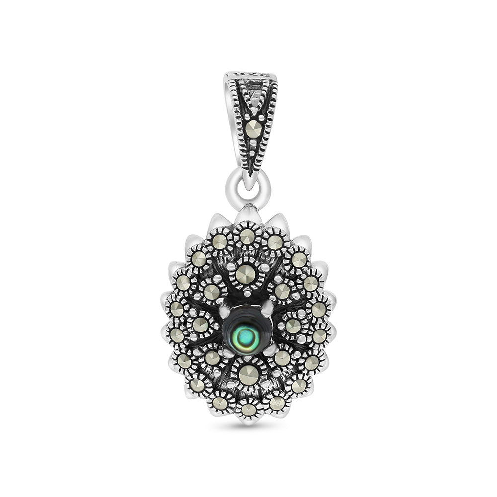 Sterling Silver 925 Pendant Embedded With Natural Blue Shell And Marcasite Stones