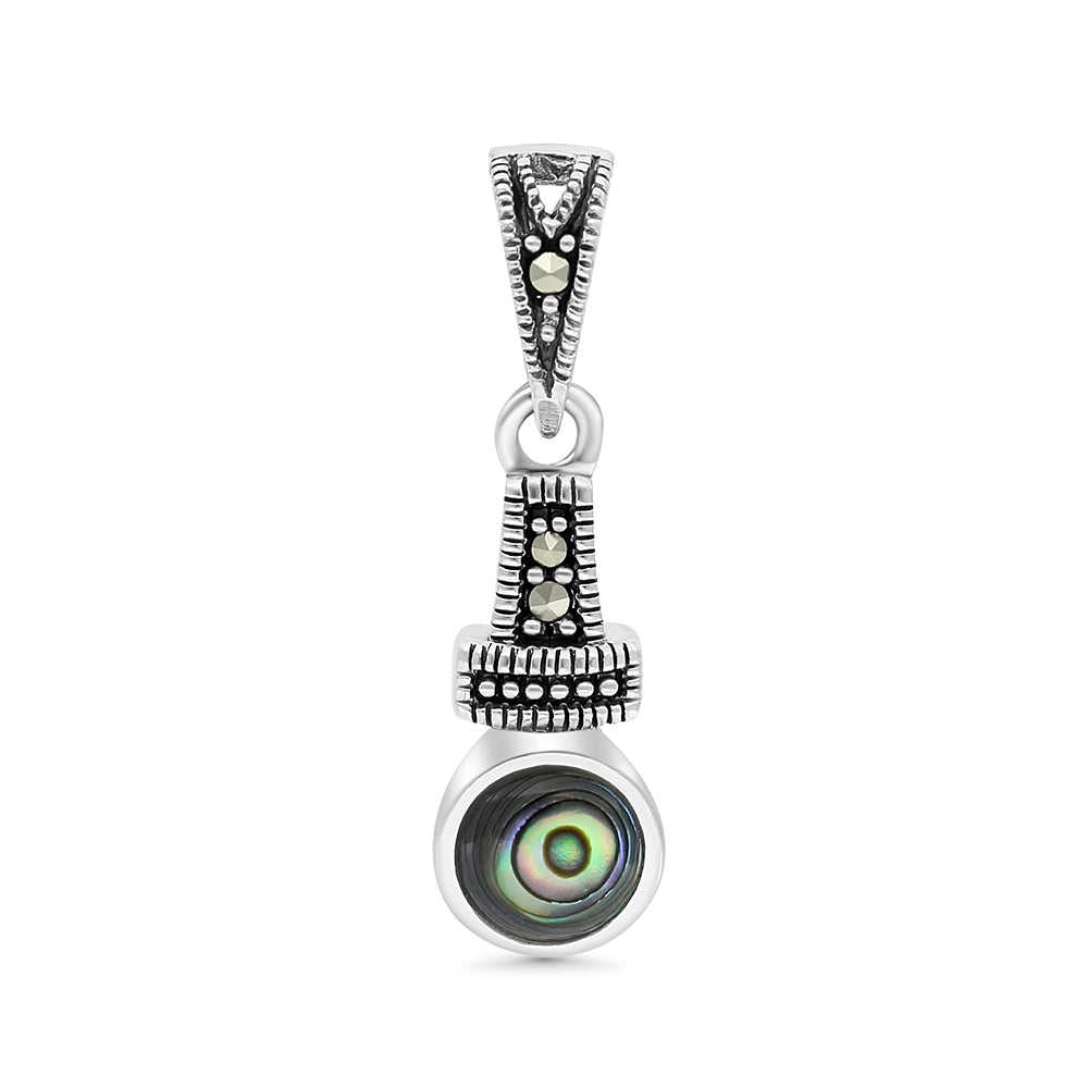 Sterling Silver 925 Pendant Embedded With Natural Blue Shell And Marcasite Stones