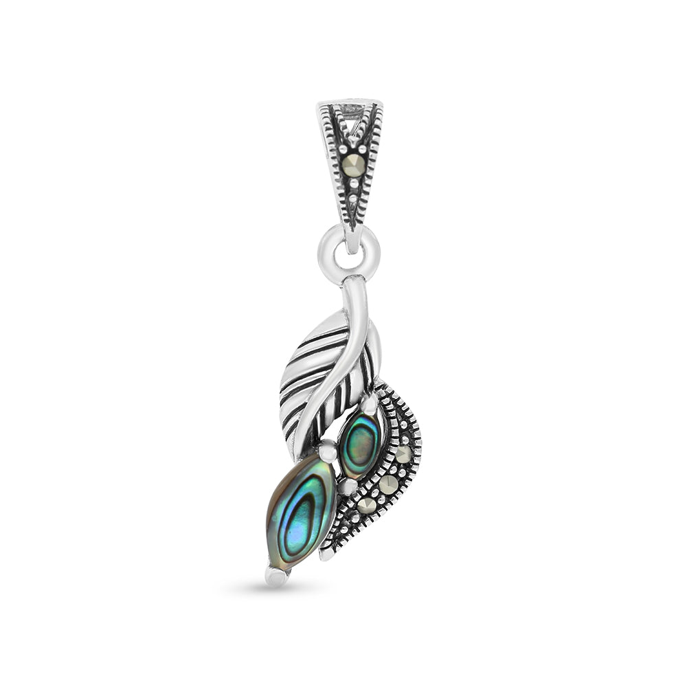 Total weight: 2.5g"Unleash your inner beauty with our 925 Sterling Silver pendant, where natural blue shell stones in marquise cut and pure Marcasite stones intertwine to create a mesmerizing masterpiece, pair it with similar earrings from our collection."