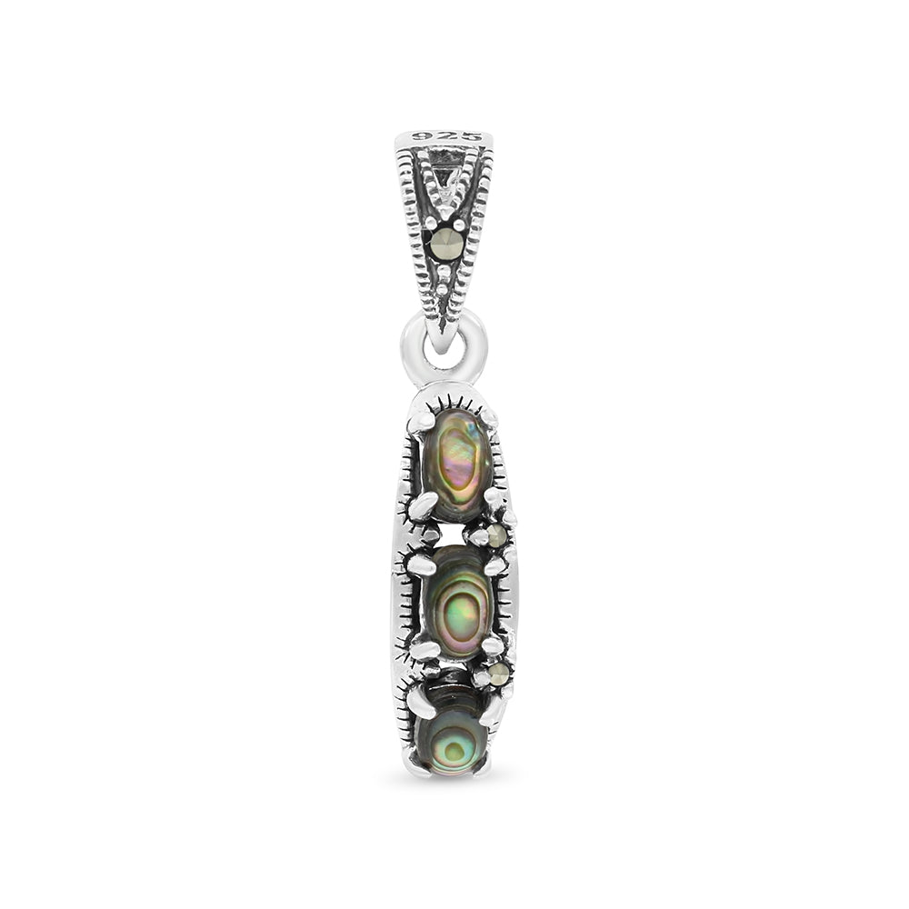 Sterling Silver 925 Pendant Embedded With Natural Blue Shell And Marcasite Stones