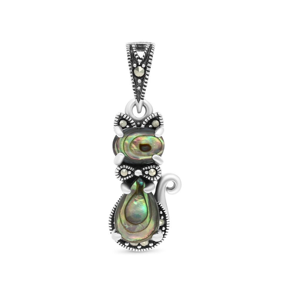 Sterling Silver 925 Pendant Embedded With Natural Blue Shell And Marcasite Stones