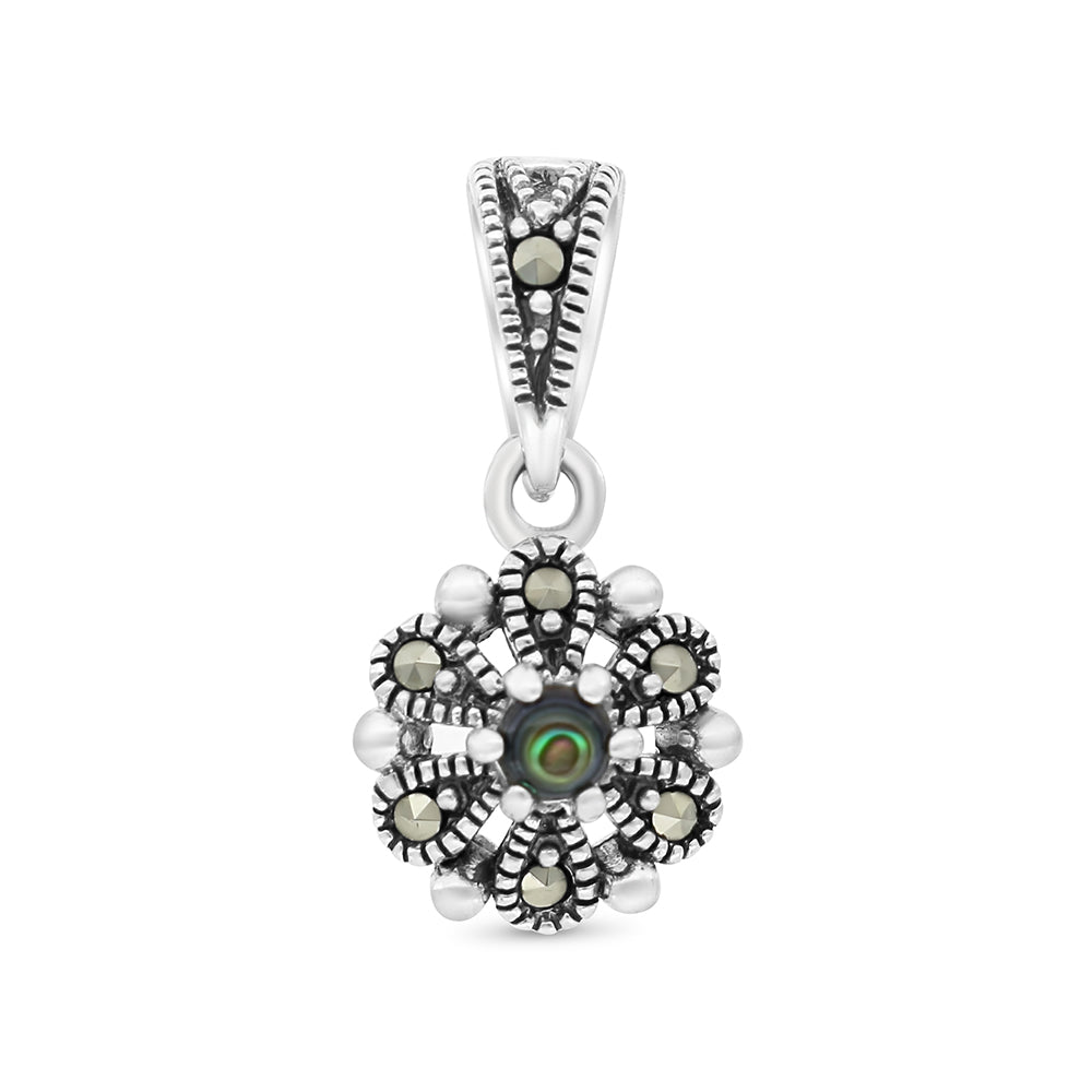 Sterling Silver 925 Pendant Embedded With Natural Blue Shell And Marcasite Stones