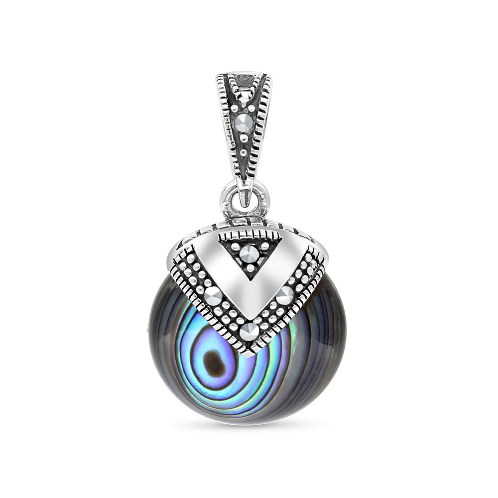 Sterling Silver 925 Pendant Embedded With Natural Blue Shell And Marcasite Stones
