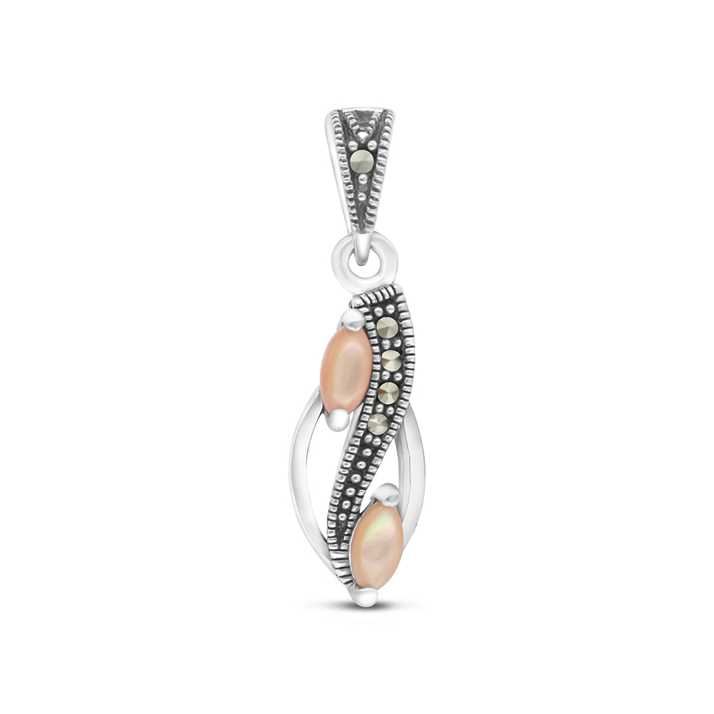 Sterling Silver 925 Pendant Embedded With Natural Pink Shell And Marcasite Stones